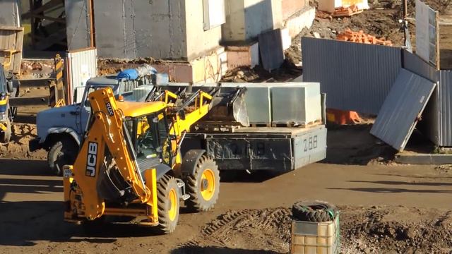 Экскаватор погрузчик разгрузит ЗИЛ грузовой бортовой
