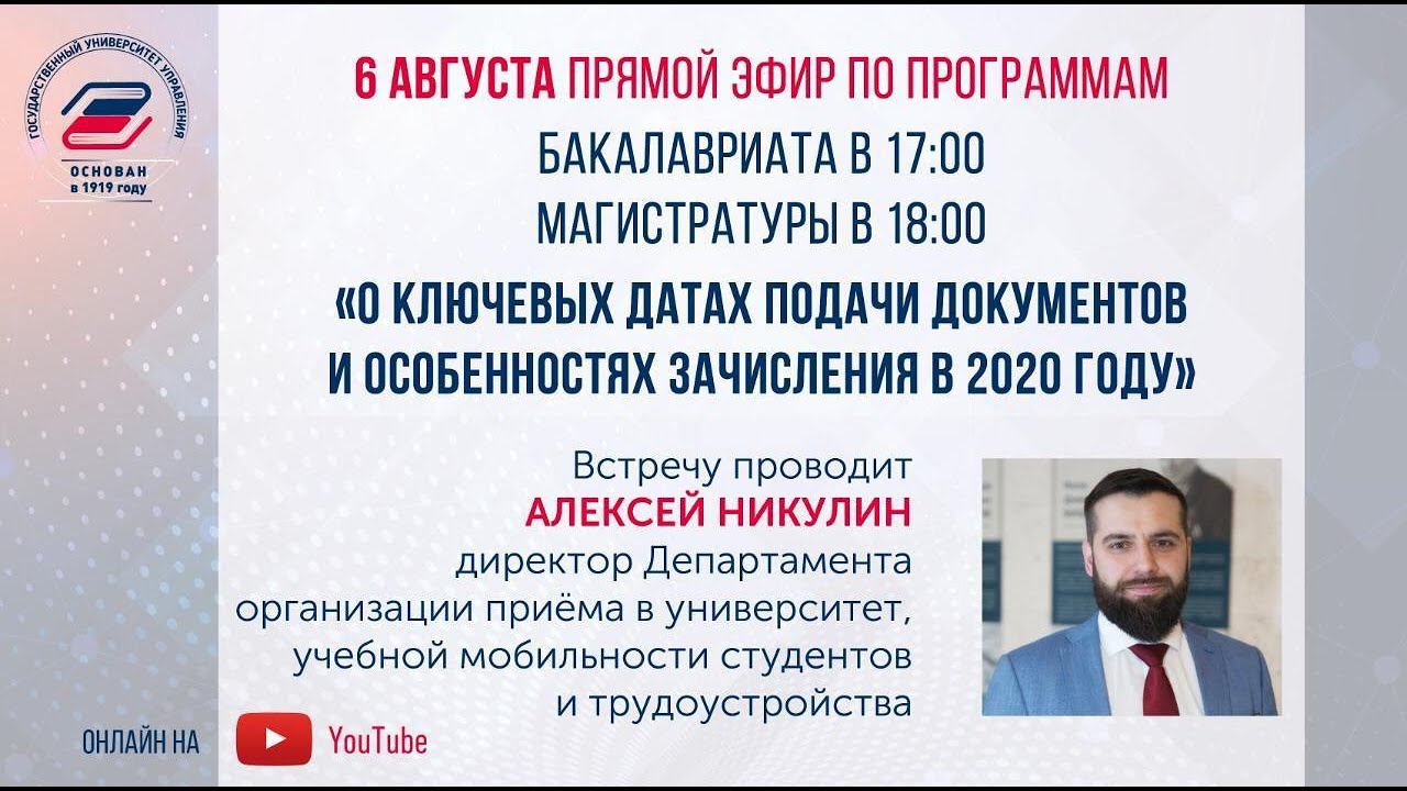 Прямой эфир «О ключевых датах подачи документов и особенностях зачисления в 2020 году»
