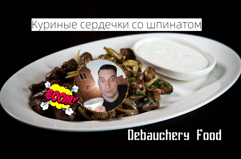 Куриные сердечки со шпинатом.