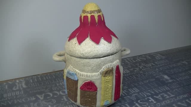 Шкатулка горшочек из бутылки и папье маше из лотков .