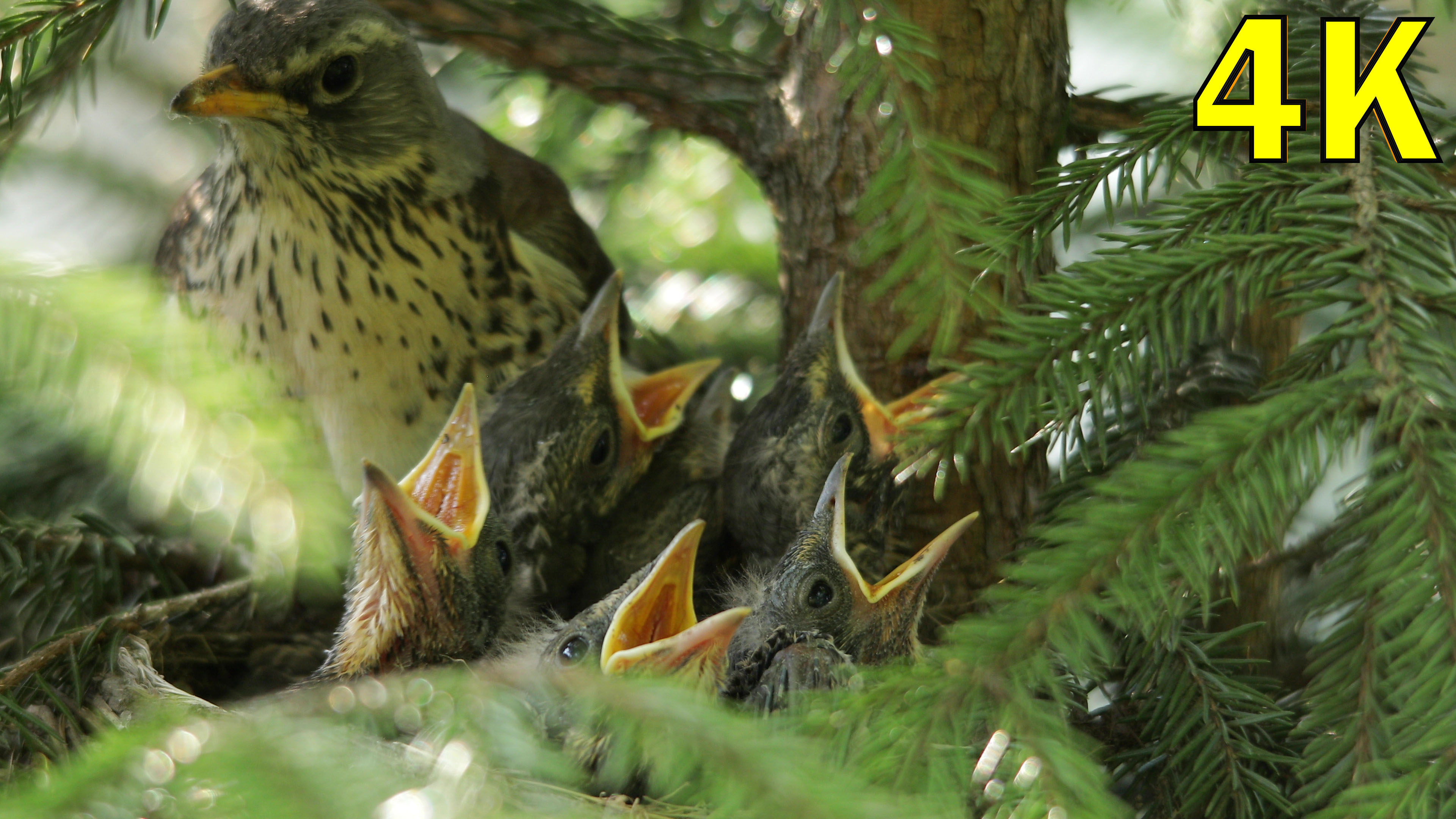 Пара дроздов выхаживают птенцов. Пока один кормит, второй отгоняет. 1:24 - Дрозд отгоняет от гнезда #дрозд #рябинник #птенцы