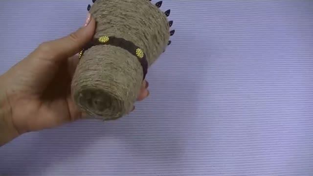 Ваза для цветов из пластиковой бутылки и джута .