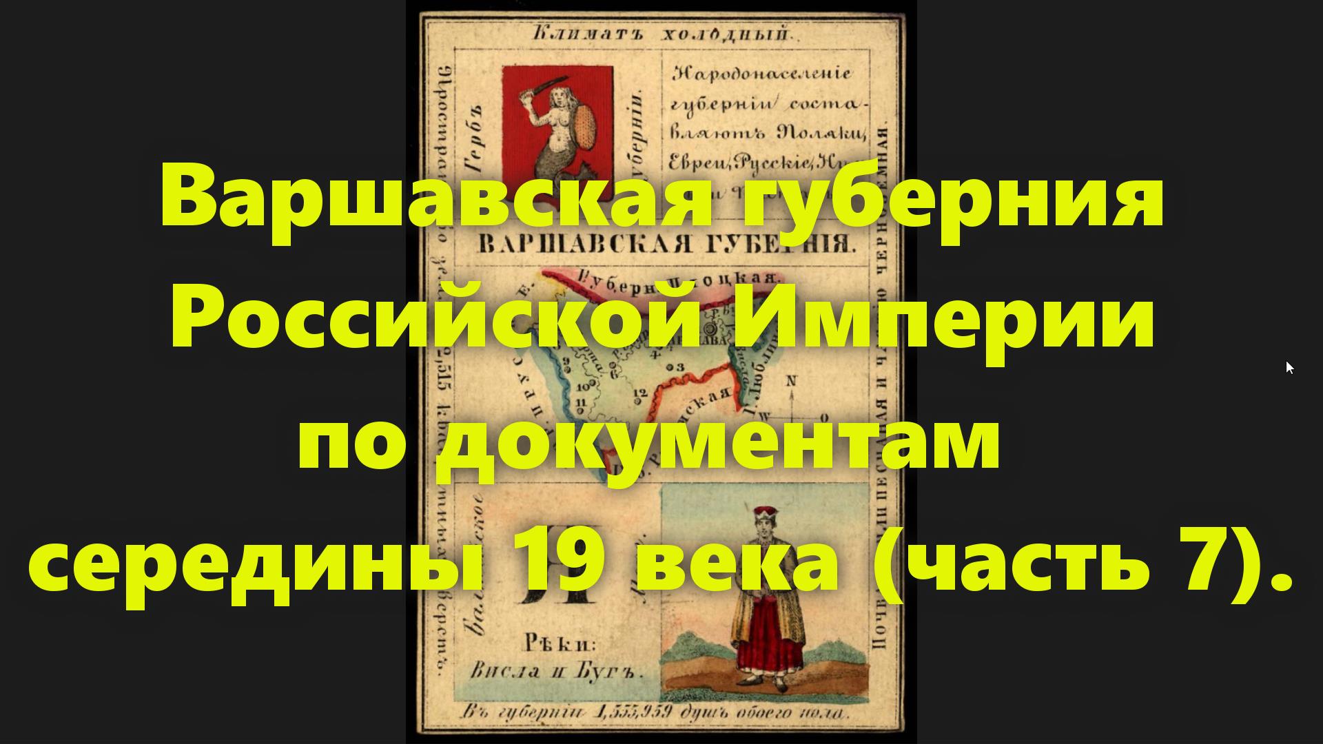 Какие были губернии в Российской Империи? Варшавская губерния в России середины 19 века. Часть 7.