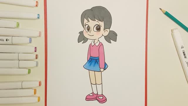 Как легко нарисовать девочку Сидзуку Кавай. Дораэмон - 3 сложность рисования