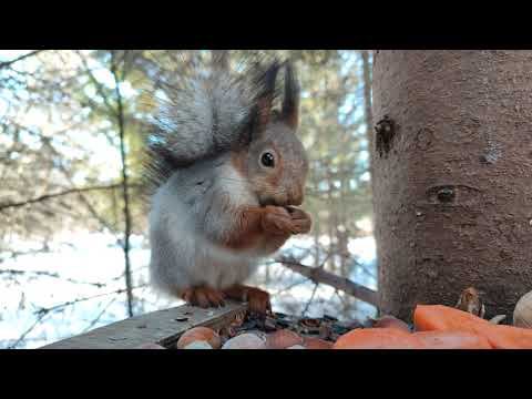 Белка не обращает внимания на морковку