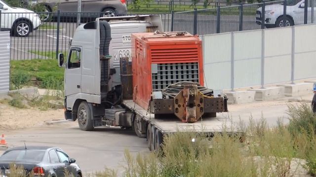 Разворот делает Тягач Volvo с полуприцепом и Генератором на нём