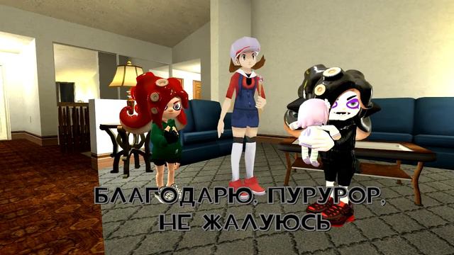 Кое как добрался до второго фрагмента видео. Первая часть фрагмента - https://www.youtube.com/watch?v=FFhxwumgP4U После того, как ребята спасли Темных Сквидов, не дав Пурпурному Сердцу после их воскрешения забрать их души. Бесфамильный вместе со своими друзьями прячутся у его дома и оказывают помощь Темному Октолингу и ждут пробужденья брата и сестры, которые вот вот долждны будут пробудиться. А меж тем Пурпурное Сердце ищет способ, как поквитаться с Бесфамильным и его друзьями за проваленый её план. =================================== [Somehow I got to the second video fragment. The first part of the fragment - https://www.youtube.com/watch?v=FFhxwumgP4U After the guys rescued the Dark Squid, without giving the Purple Heart After their resurrection to take away their souls. Beskamily together with his Friends hide at his house and help the Dark Octoling and await the awakening of their brother and sister, Who are here to awaken. Meanwhile Purple Heart seeks a way to get even with Besfamily and his friends for failing her plan.]