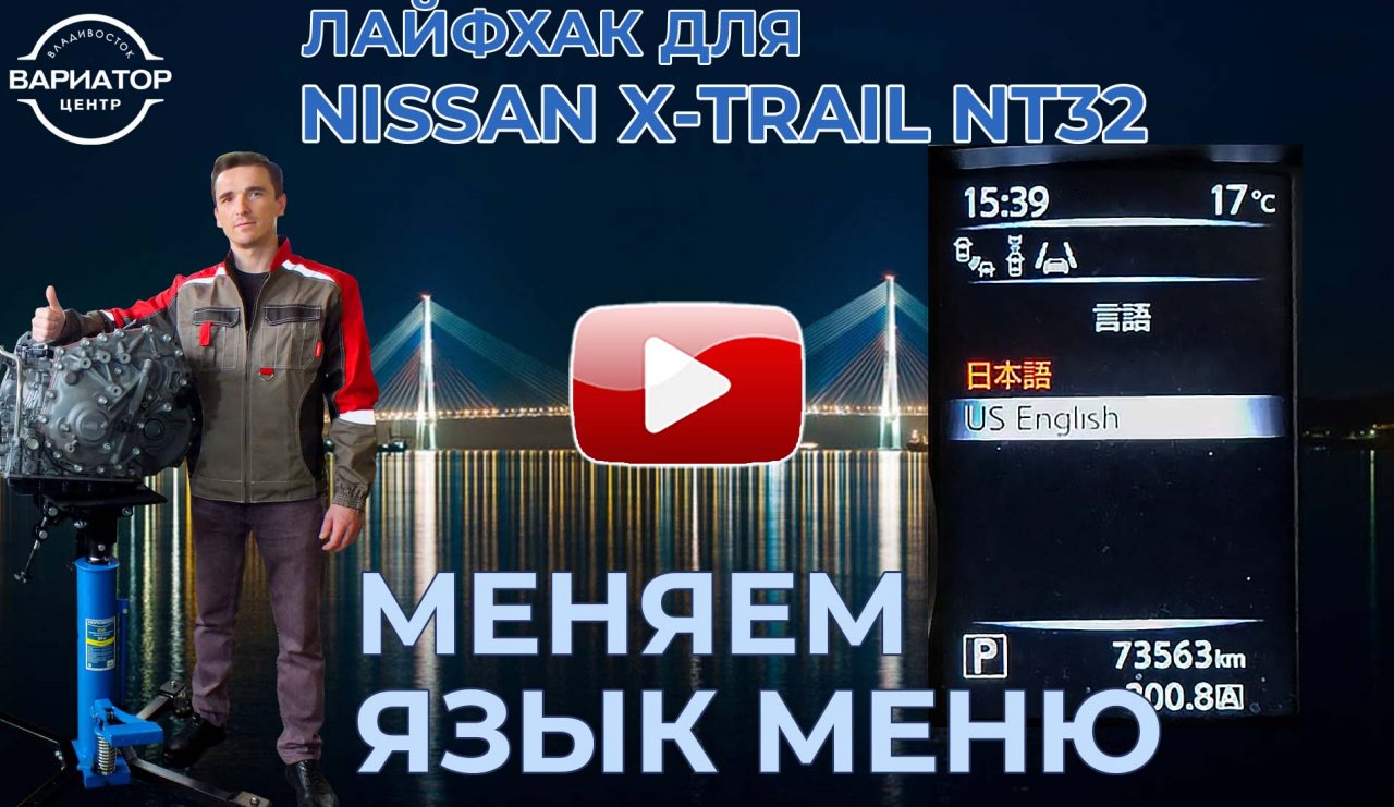 На гибридных и на обычных икстрейлах алгоритм один и тот же. 1. Включаем зажигание 2. Кнопкой меню на руле листаем до текстового меню 3. Отсчитываем с верху восьмую строчку в низ 4. Заходим в это меню и видим выбор языка японский и английский 5. Выбираем английский язык и нажимаем интер Всё! Вы великолепны! Отвечу на любые вопросы по Вариаторам! наш телефон: +7 (904) 629-11-88 Сергей Бабинец наш сайт: https://вариатор-центр-владивосток.рф/?utm_media=rutube наш VK: https://vk.com/cvt_25 наш Рутуб: https://home.strannik-j.org/channel/24728106/videos/ наш Ютуб: https://www.youtube.com/channel/UCK2MArBpsou6mYDgvyNOm5g наш канал Дзен: https://zen.yandex.ru/variator наш инстаграмм: https://www.instagram.com/variator_center_vladivostok/ наш телеграмм канал: https://t.me/variator_center_vladivostok