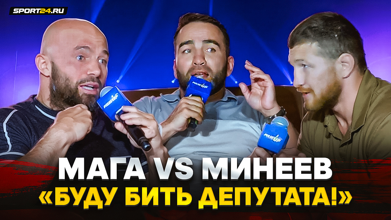 Владимир Минеев и Магомед Исмаилов: пресс-конференция в Дагестане перед поединком по боксу, который запланирован на 20 июля. 00:00 – Исмаилов, Минеев и Камил Гаджиев в здании 01:12 – кого в Дагестане поддерживают больше? 01:51 – «Рад, что кому-то, помимо меня, это противостояние еще интересно. Как мне этого красавчика не хватало!» Исмаилов объясняет, почему этот бой больше нужен ему 02:41 – Камил отдает дань уважения Махачкале и отмечает: «Для нас важно, чтоб эта встреча не была похожа на те встречи, когда люди на пресс-конференциях друг с другом дерутся…» 04:55 – почему формат бокса больше выгоден для Магомеда Исмаилова? 06:05 – «ЧУВАК ВОЗЛЕ ПИВНОЙ ТОЖЕ БЬЕТ РУКАМИ». Реакция Исмаилова на такую оценку его техники от Минеева 07:34 – Минеев считает, что формат бокса удобнее ему 08:18 – «С Исмаиловым эпические противостояния получаются…Я в такое готов вернуться» 09:26 – «Боксерская техника Маги? Я бы не сказал, что она присутствует» 10:46 – «Я ВЫХОЖУ И ДЕРУСЬ!» 11:34 – Исмаилову нравится, что в него не верят: «Я конкретный андердог! Мне это нравится. У него сейчас проблем больше, чем у меня» 12:26 – «Если ты у Маги не выиграешь по боксу, это ПОЗОР». Камил обостряет 13:05 – спорт у Минеева отошел на второй план? 14:52 – выносливость Исмаилова. Мага не собирается экономить силы: «Я выхожу туда драться!» 16:13 – «Ничего я не поменял в подготовке! Я хочу заходить и драться!» 17:05 – «От усталости сознание еще никто не терял! А я потерял…» 18:12 – почему, по мнению Камила, Маге будет чуть проще, чем в ММА 19:35 – Минеев не верит в дружбу с Магой из-за его НЕАДЕКВАТНОГО поведения 20:37 – а Камил верит… 21:15 – «Когда Минеев упадет в ринге, я его так тепло по-дружески обниму…» 22:20 – «Мне было страшно, кто-то кричал: «Скорую в ринг» 23:08 – «Мы не враги!» 23:51 – «Владимиру стоит опасаться меня. Он знает, что я буду нападать на него» 25:28 – Исмаилов намерен заставить Минеева передумать завершать карьеру 26:26 – «Давайте из Рамазана Исмаилова не делать великого тренера. Насколько я знаю, он всю жизнь на втором рынке мясо продавал» 27:55 – «Я был уверен, что Владимир будет готовиться не в Дагестане». Нюансы подготовки Минеева 29:16 – «Одной рукой боксировать будешь?» Необычный договор о привязанной руке 30:46 – у Магомеда Исмаилова взяли реванш! 32:16 – Минеев VS Исмаилов на голых кулаках. Это обсуждалось? 34:35 – Сульянов VS Бадаев 37:18 – «Вы будете порхать и ЖАРИТЬ?» 38:19 – Минеев VS Исмаилов по грэпплингу 39:55 – Минеев настоял на 8 раундах вместо 6? 40:45 – и снова о боксе с привязанной рукой. Вопрос от брата и тренера Магомеда Исмаилова: «Если он свое слово сдержит…» 42:18 – диалог брата Исмаилова и Владимира Минеева 43:14 – Камил пытается вытащить из Минеева конкретный прогноз на бой 44:12 – и все-таки – почему сторона Минеева так сильно захотела боксировать 8 раундов? 46:09 – «Я ни при каких раскладах не вижу победу Минеева по очкам. Только нокаутом может победить» 46:57 – «Получается, я депутата буду бить в ринге? У меня есть возможность безнаказанно бить депутата в ринге!» 47:29 – «Я очень попросил Вову и Магу не выкладываться максимально при первой же встрече. Не надо драться, постепенно нагнетайте» 49:05 – «Мага просто зарабатывает деньги» - «А в стойке что было во втором противостоянии? Он меня перекидал что ли?» 50:20 – «Кстати! А в Ульяновске будут люди, которые болеют за Исмаилова?» 51:36 – Камил Гаджиев подробно отвечает на вопрос о ту