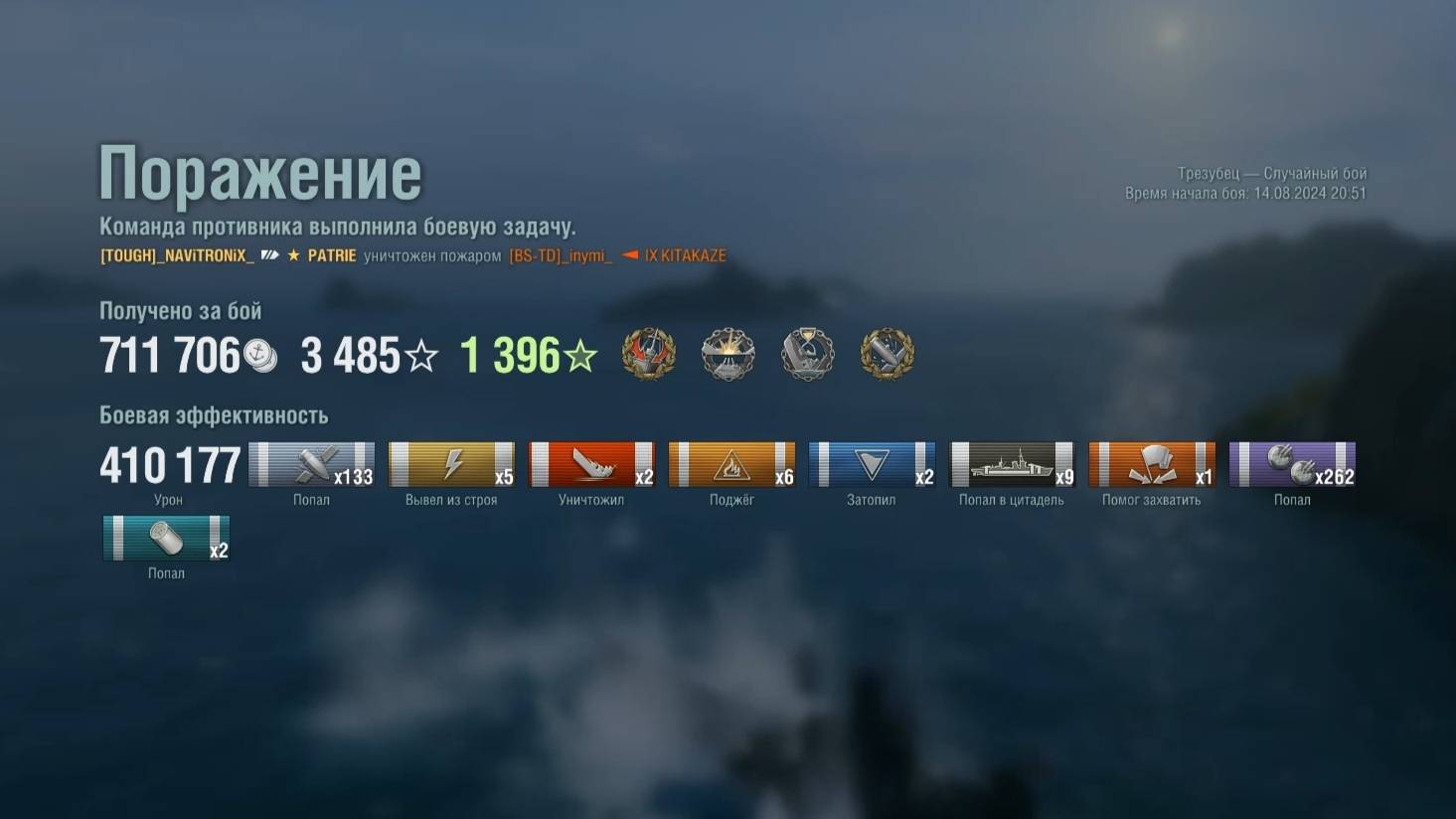 Супер линкор Patrie : +410к урона на карте Трезубец - World of Warships