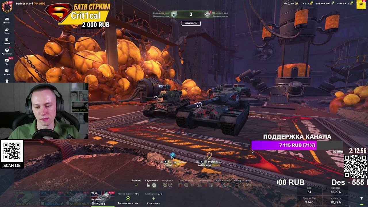 Работают танки на заказ (1 бой = 150р) Поддержать канал (системы донатов): 1. https://donatepay.ru/don/pm1nd 2. https://www.donationalerts.com/r/pm1nd 3. любимая КАРТА СБЕРБАНКА - 4817 7601 5407 8525 4. Для PayPal - https://donatty.com/pm1nd ❤️ Подписывайтесь на мой Telegram, чтобы не пропустить важные новости: https://t.me/pm1nd Стримы также идут на ВК Видео: https://live.vkvideo.ru/perfect_m1nd/ Группа ВКонтакте: https://vk.com/pm1nd С помощью системы донатов можно сделать стрим веселым и интересным. С каждым донатом можно отправить музыку. А за разную сумму донатов можно добавить интерактива: 1. Заказать бой на танке - 150₽, приятным бонусом могу объяснить, как играть на нем в деталях (указать в сообщении) 2. Подробный анализ (чек) вашей статистики и уровня игры — 300 ₽ 3. Анализ вашего реплея с моими комментариями — 300 ₽ Если будет что-то смешное или интересное — сделаем короткое видео (шортс). Для гарантированного шортса — 3000 ₽. 4. Взвод со мной — 888 ₽ Около 40 минут совместных боёв и нагиба рандома! 5. Вступление в клан без очереди — 1800₽ Гарантированное место в клане без лишних вопросов. 6. Закажи танк для следующего стрима — 10000 ₽ Например, прокачаю любимый или нелюбимый танк. Возможен мастер на нем! 7. Прокачка танка до 2 отличительных отметок — 20000 ₽ Для тех, кто хочет сразу много боёв на любимом танке. 8. Заказать мастера на танк во время тематического стрима Нужно закрыть донат-полоску (на экране). Пример: полоска — 5555 ₽, уже собрано 4444 ₽, осталось 1111 ₽ для заказа мастера. 9. Мастер на обычном (не тематическом) стриме - 5000 ₽ 10. Странные заказы танков (стоковый СТ-1, ехать кормой вперед и т.п.) - 2000₽ бой Важно! На мастера нельзя заказывать следующие танки: Бураск, Калибан, ААТ60, VZ-55, МБ-64, Минотавр, TS-60, Протей. Тариф 15 000 ₽ доступен на: B-C Roland, Challenger, ХМ66ф, Об 268/4, Т-49 (крупный калибр), T95E6, B-C 25T, WZ-121, AMX Defender. Гайд, как задонатить: https://youtu.be/LUzMMiJpQYg?si О себе: меня зовут Алексей, мне 30, живу в данный момент в Казани. Играю в танки с 06.07.2014. Начинал с планшета, перешел на ПК в последние 3-4 года. ️Мой игровой ПК: Процессор: Intel Core i7-13700KF Материнская плата: MSI MAG Z790 TOMAHAWK WIFI ОЗУ: Corsair Vengeance 2×16 ГБ RGB DDR5 7000 MHz Блок питания: Deepcool PQ850M, 80 PLUS GOLD Накопитель: Samsung 970 EVO Plus 1 ТБ NVMe M.2 Система охлаждения: Deepcool LT720 360mm трёхвентиляторная Видеокарта: RTX 4080 16 ГБ MSI Ventus 3X Корпус: PANTEKS ETHOO PRO 2 Клавиатура: Cidoo V87 Мышь: Razer Basilisk V3 PRO Наушники: Asus ROG Delta S Animate #TanksBlitz #ТанкиБлиц #ТанкиСтрим #ТанкиБлицСтрим #PM1ND