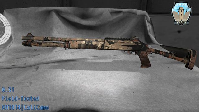 Skin wear preview and float value. Wear: From 0.00 to 0.60 Collection: The Italy Collection Weapon class: Shotgun Weapon name: XM1014 Weapon skin: CaliCamo Rarity: Industrial Grade Souvenir: Available. StatTrak: Not available Thanks to ORGWOLF for the wear/float content.