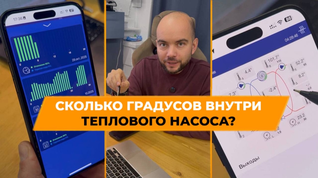 В этом видео показываем работу теплового насоса на реальном объекте – завод в Королёве Московской области. Разбираемся, как насос нагревает теплоноситель до высоких температур, и проверяем параметры системы на практике. Вы увидите: • Забор тепла из земли с температурой около 7,3°С и преобразование его до нужной температуры • Роль компрессора, который сжимает фреон и нагревает его до 102°С • Почему тепло на выходе из насоса около 100°С, а в системе отопления около 52°С? Видео позволяет наглядно понять эффективность и реальные показатели теплового насоса в работе. Подписывайтесь, ставьте лайк и задавайте вопросы – расскажем всё о современных технологиях экологичного отопления!