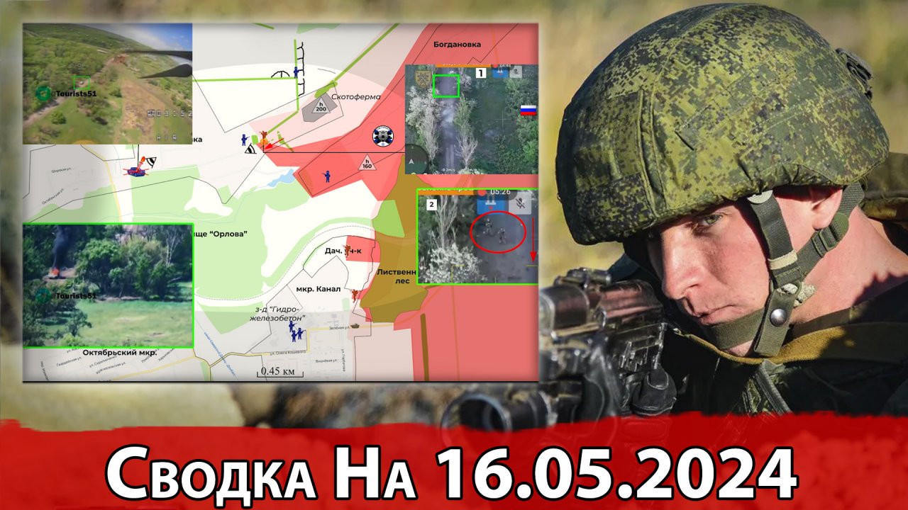.Друзья, поддержать наш проект вы можете, отправив денежный перевод на карту Сбербанка и Яндекс Кошелек: Карта Сбербанка -- 2202 2067 9350 6465 Яндекс Кошелек -- 410019779835638 Больше информации на нашем ТГ: https://t.me/oruzhejnyj_master Мы на Бастионе: bastyon.com/warsitreps. За прошедшие сутки произошли следующие изменения. На Константиновском направлении продолжаются бои. В районе Калиновки операторы двухсотой бригады без перерыва охотятся за транспортом противника, с помощью которого осуществляется ротация и доставка боеприпасов. В центральной части поселка ликвидирован очередной пикап. ВСУшники покинули место поражения. Украинская сторона также оказывает противодействие. В восточной половине данного пункта наносит артиллерийские удары по бойцам. Здесь интересен момент тем, что трое других воинов прибежало к месту обстрела со стороны Скотофермы. Не боялись получить пули в спину. От серии вражеских ударов начали укрываться в окопах и лесопосадках. Немного расширяется контроль российской стороны в сторону Скотофермы. Несмотря на то, что гвардейцы достигли Калиновки, ВСУ все еще присутствуют в юго-западной части Богдановки, которая ниже ее в среднем на 40 метров. Вчера появились свежие кадры, как четверо украинских военнослужащих возвращались в подвальное укрытие. Шли с восточной стороны Сразу же последовала серия артиллерийского огня. После обработки, по наружной части подвала прилетел дрон-камикадзе. Моменты поражения на этом участке показывались и ранее, в прошлых сводках. Территория до места текущего обстрела снова становится серой зоной. Бои продолжаются. В районе микрорайона “Канал” обстановка остается прежней. В направлении Новопокровского сохраняется высокий темп боевых действий. Противник малыми группами проводит контратакующие действия. Реактивщики накрывают их. На кадрах, место обстрела в северной части балки Очеретино. Уральский ударный взвод с помощью коптеров-сбрасывателей гранат, добил живую силу. Судя по съемке, бойцы еще не присутствуют на этой территории. Уточнена линия контроля. В районе Яснобродовки отряды группировки “Центр” продолжают осложнять положение противника. Установили огневой контроль над трассой Яснобродовка – Нетайлово. Любые передвижения сразу же подвергаются ударам. На середине пути бойцы ликвидировали БМП “Мардер” иностранного производства. Пока что линия соприкосновений не изменилась. В направлении Орехово идут бои. В районе Работино воины 42-й дивизии зачищают позиции от противника. Идет упор на восточную окраину села. Операторы, барражирующими боеприпасами, ликвидируют вражеские силы. В укрепе, прилетело по обороняющемуся, который из стрелкового оружия безуспешно пытался подбить дрон-камикадзе. В конце, успел лечь на землю. Получил ранение. Данный укреп удерживается украинской стороной. На восточной окраине Работино добавляется серая зона. Идет интенсивный обмен артиллерийскими ударами и дронами-камикадзе. Бойцы задействуют мотоциклы, благодаря которым можно быстрее передвигаться. На Харьковском направлении продолжаются бои. В районе Липцы не утихает активность боевых действий. В северной части дачного поселка Глубокое противник опубликовал кадры, где при поддержке расчета БПЛА захватил постройку, в которой находились бойцы. То есть ВСУ также проводят контратаки. Немного смещена линия конт