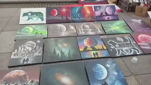 Космические картины ... 'spray paint art " на Невском проспекте в СПБ