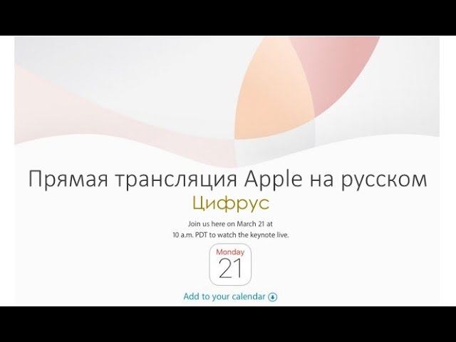 Презентация Apple 21.03.16: онлайн-трансляция на русском языке от ЦИФРУС