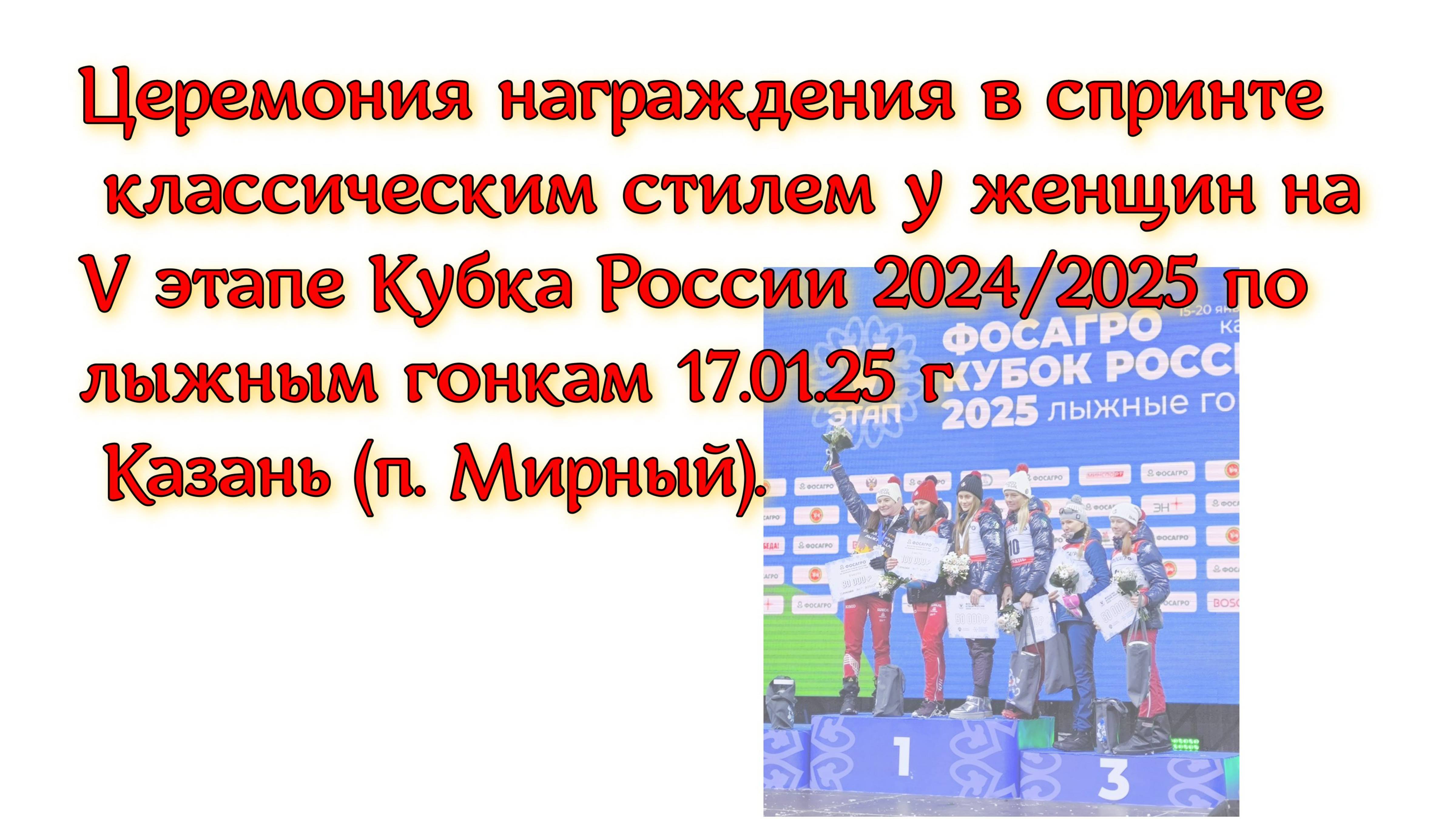 Церемония награждения в спринте классическим стилем у женщин на V этапе Кубка России 2024/2025 по лыжным гонкам 17.01.25 г. Казань (п. Мирный).