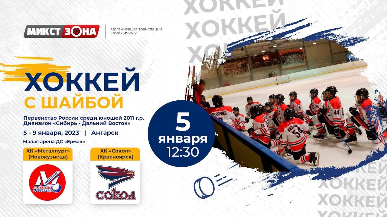 Первенство СФО по хоккею с шайбой среди юношей 2011 г.р. Группа "Б" (Второй этап) Матч между командами «Металлург» (Новокузнецк) – «Сокол» (Красноярск). Место проведения: малая арена ДС «Ермак», г. Ангарск, Иркутская область.