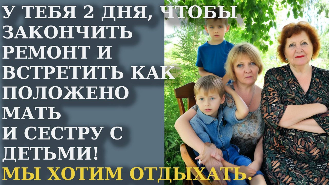 У тебя 2 дня, чтобы закончить ремонт и встретить как положено мать и сестру с детьми! Понял?