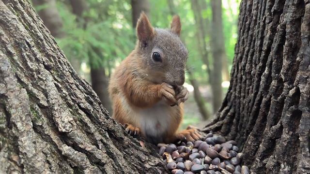 Белка Черныш погрыз кедряшки и запил водой