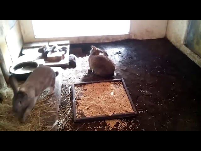 Мамочка помесь Фландер+серый великан Папочка Помесь Серый Великан+Калифорниец!!! получились черненькие и беленькие крольчата!!!