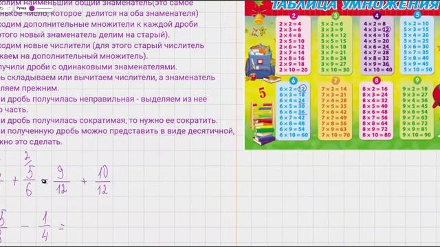 1. Алгоритм сложения и вычитания обыкновенных дробей
