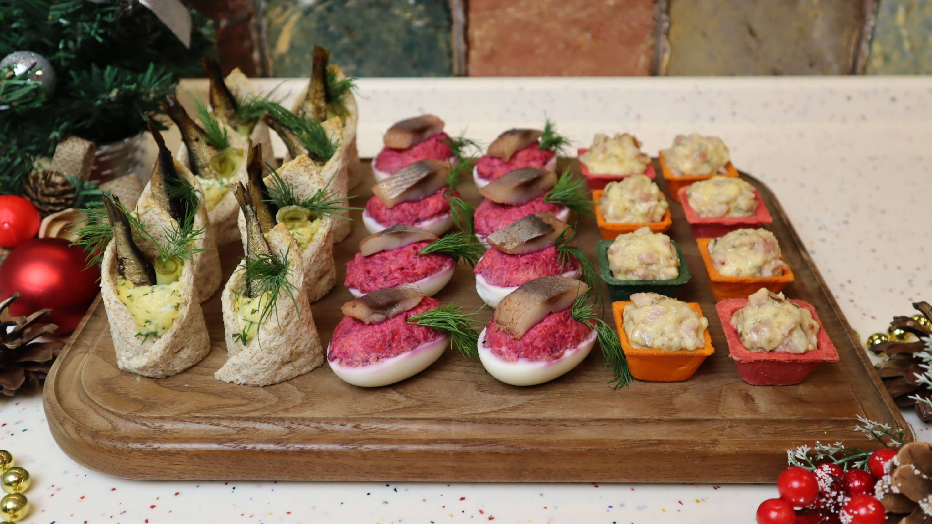 Рецепт - 🎄3 закуски на Новогодний стол!🎄/Конвертики/Селедка под "Шубой"/Тарталетки с курицей