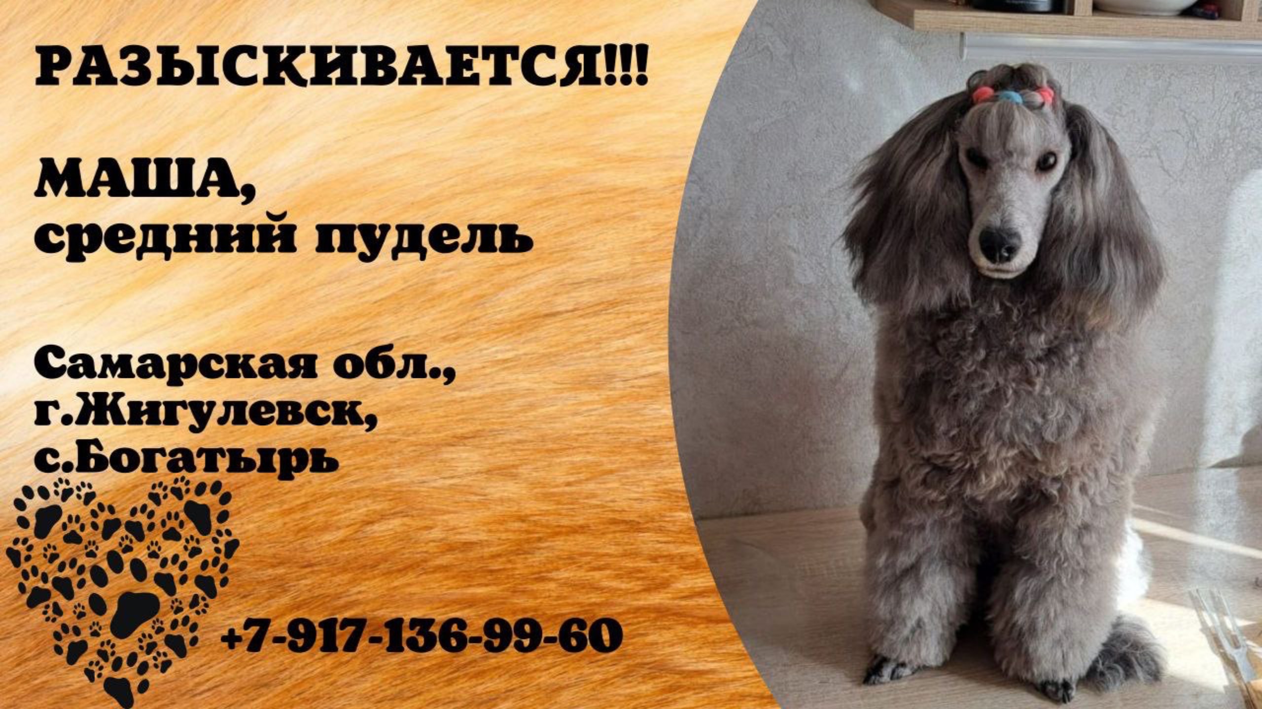 Пропала собака! МАША, средний пудель. Самарская обл., г.Жигулевск.