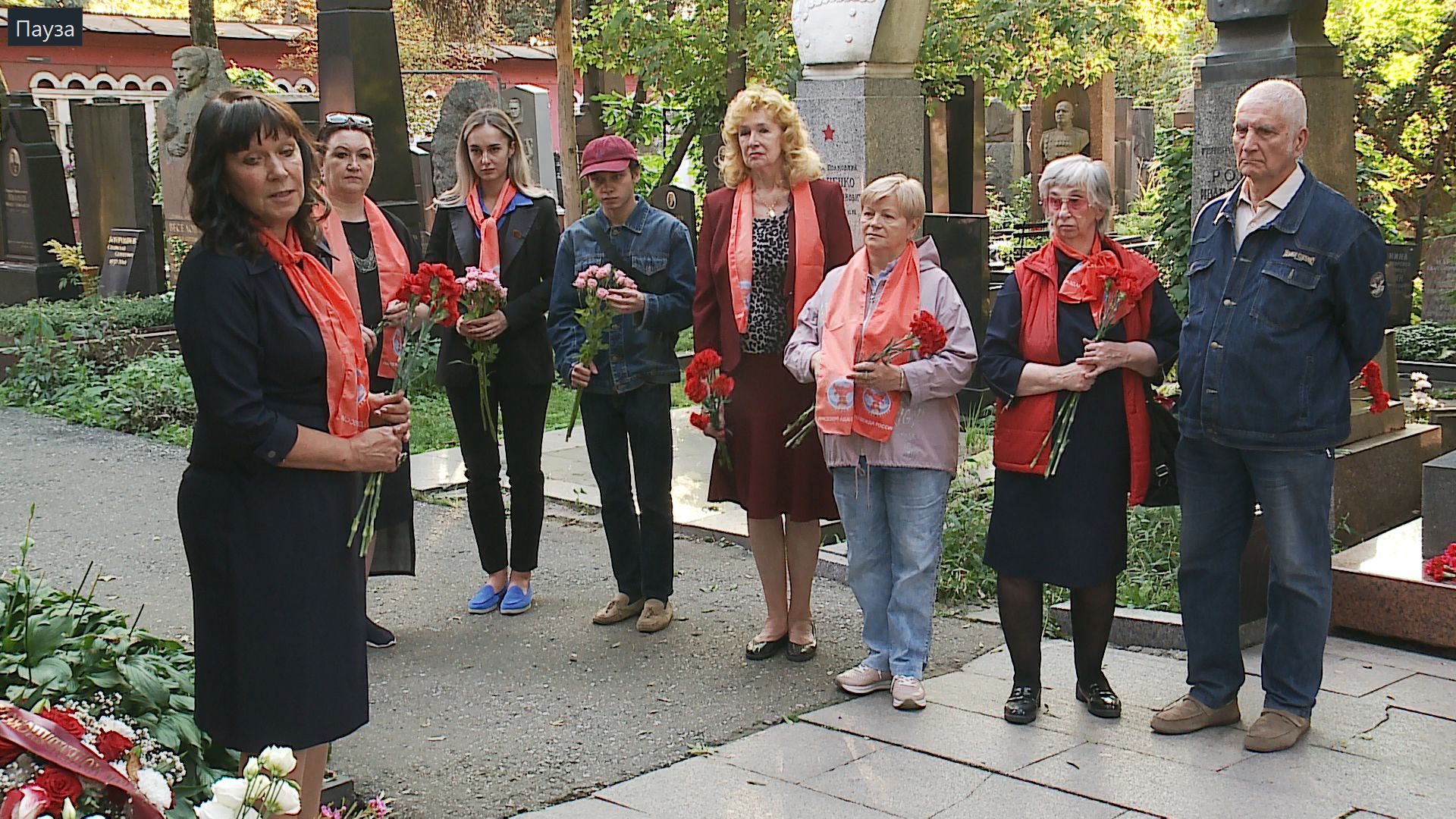 Члены Московской городской организации Всероссийского женского союза "Надежда России" и председатель Союза женщин Республики Молдова Галина Федотова возложили цветы к могиле Зои Космодемьянской на Новодевичьем кладбище в Москве