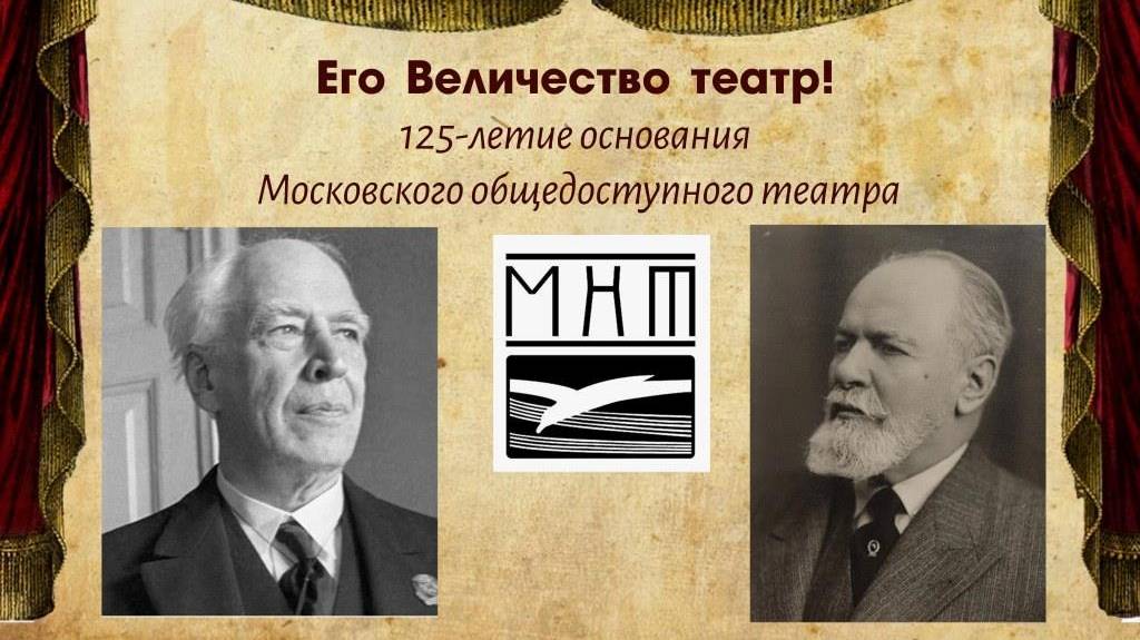 Театр — это уникальный вид искусства, который духовно и культурно обогащает человека, повышает уровень нравственности общества, дарит зрителям незабываемые впечатления и эмоции. В 2024 году исполняется 125 лет со дня основания Московского Художественного театра. Московский Художественный академический театр – один из самых известных театров в мире. Началом Художественного театра считают встречу его основателей Константина Сергеевича Станиславского и Владимира Ивановича Немировича-Данченко в ресторане «Славянский базар» 19 июня 1897 года. После триумфальной постановки в 1898 году чеховской «Чайки» МХАТ стал символом обновления мировой сцены, а изображение чайки стало эмблемой МХАТ. Подготовлено библиотекарем Гостагаевской сельской библиотеки – филиала №12 Д. Я. Бухаровой