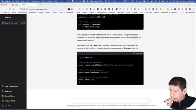 Feliz Navidad!!!; En este video probamos la Inteligencia Artificial de ChatGPT (https://chat.openai.com/chat), hacemos muchas preguntas y vemos su efectividad como herramienta de ayudaq para realizar ataques y técnicas de hacking. #hacking #chatgpt Sígueme en mis redes sociales: ✅Twitter:https://twitter.com/davidpereiracib ✅LinkedIn: https://www.linkedin.com/in/davidfper... ✅Twitch: https://www.twitch.tv/davidpereiracib ✅Página Web: https://secpro.co ✅Facebook: https://www.facebook.com/people/David... ✅Si quieres apoyarme en Patreon: https://www.patreon.com/ciberseguridad __________________________________ Websites: SecPro en Español: https://secpro.co SecPro United States: https://secpro.llc __________________________________ #secpro #Protegido #Ciberseguridad #Blinda #Kali #Hacking Pentesting #NAC #MAC #Aprende #Aprender #learn #Practica #Capacitacion #Network #Access #Control #WiFi #Wireless #Inalámbrica #Ethical #Pruebas #Hackear #Hackeo #Ataque #Desarrollo #PyCharm #VisualStudio #Code #Linux #Windows #MACOSx #Script #Scripting #Python #Python2 #Python3 #Vulnerabilidad #Vulnerability #Exploit #Backdoor #Malware #Ransomware #Virus #Seguro #Phishing #Ingeniería #Social #Engaño #Apt #Gusano #Troyano #FUD #DNS #Exfiltrar #Cifrado #exfiltration #Encriptado #Descifrar #Comptia #Ceh #oscp #Forense #Computo #Evidencia #IoT #Bluetooth #Sniffer #Wireshark #bug #bugs #bounty #hackerone #bugcrowd #bugbounty #hacking