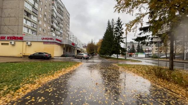 Уфа, 4К, ул. Ферина, прогулка под дождем, осень 2023