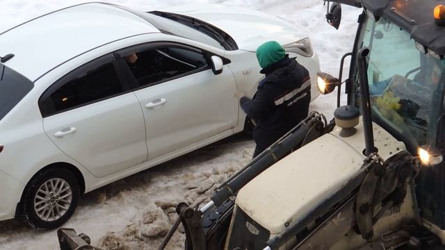 Уборка колеи трактором и гастарбайтерами