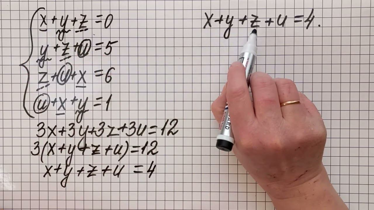 Решаем страшную систему уравнений с четырмя неизвестными. Алгебра, 8 класс