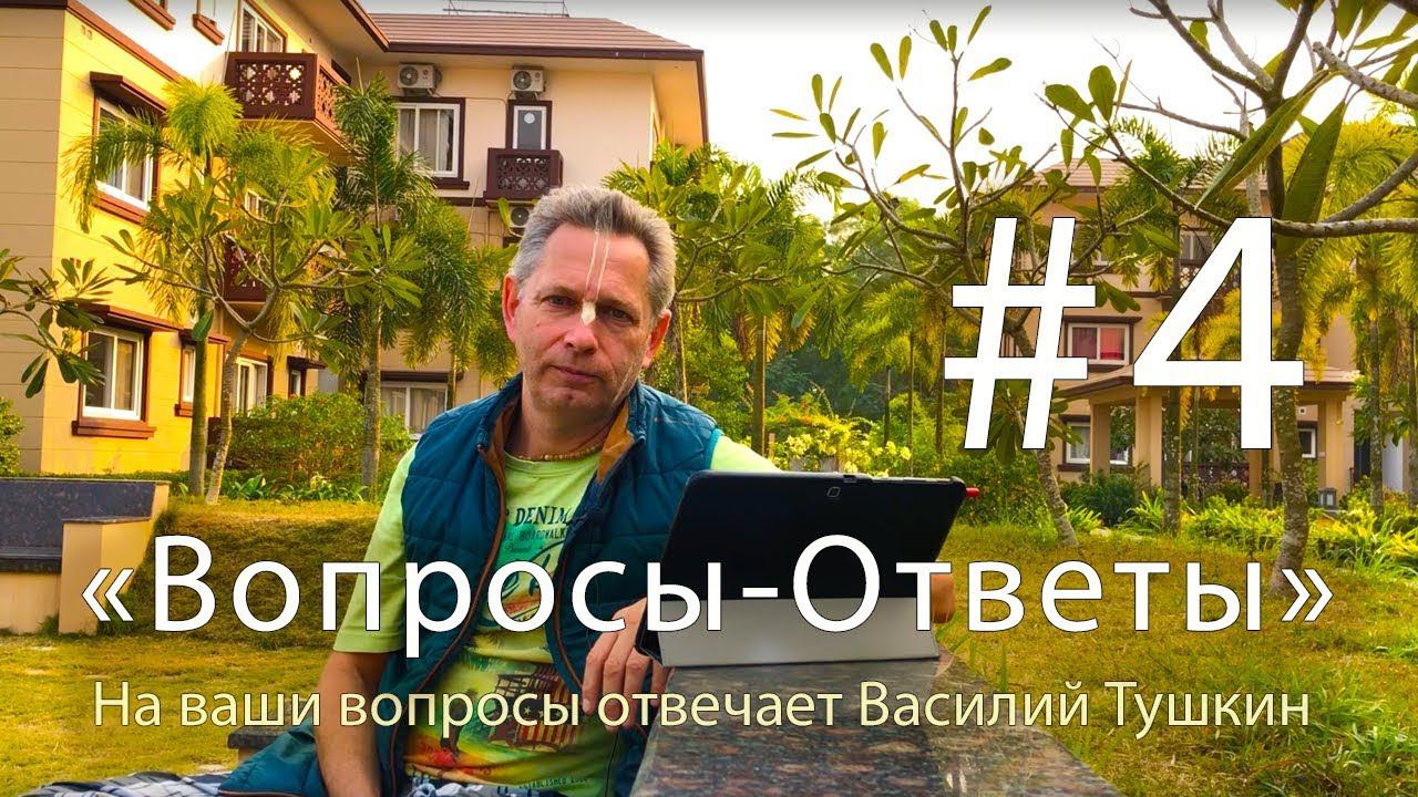 "Вопросы-Ответы", Выпуск #4 - Василий Тушкин отвечает на ваши вопросы Василий Тушкин (Враджендра Кумар дас) - философ, филолог, востоковед, просветитель. ВОПРОСЫ В ДАННОМ В ВЫПУСКЕ: 0:00 Приветствие 0:25 - Как Вы думаете, чьими воплощениями могут быть Мохамед у мусульман, Христос у христиан и Будда? Аватары Вишну? 4:05 - Расскажите пожалуйста как направлять сексуальную энергию в благость, и как избавится от таких пороков как порнография , онанизм, сексуальные связи на одну ночь и всё из этого вытекающее? 9:19 - Может ли у женщины быть духовный учитель? Всегда ли и только ли муж - это духовный учитель для женщины? 11:37 - Где или как возможно узнавать расписание ваших будущих лекций по миру? 13:04 - Можно ли относить такое качество как целеустремленность к саттва-гуне? Или оно ближе к гуне страсти? 14:42 - Как полюбить форму Господа Джаганнатхи? Немного смущает Его странный вид. 15:43 - Знакомы ли Вы с книгой "Женщина - мать или господин"? Хотелось бы услышать Ваш комментарий по поводу этой книги. 21:16 - Скажите пожалуйста, для чего проводятся (проводились раньше) ягьи полубогам/Богу? Это выражение благодарности? Или полубоги нуждаются в них? 24:03 - Есть масса примеров безмолочной диеты, которая решает проблемы со здоровьем. Что все-таки является проблемой для вегетарианцев: переедание, или большое количество углеводов, или все-таки молоко? Очень много вегетарианцев имеет проблемы с пищеварением. Почему? 28:00 - В Ведах есть знания обо всем. Почему современные достижения в отраслях знания о применении атомной энергии, медицины, физики, математики и т.д. только в последние десятилетия достигли прогресса? Почему люди, ученые 100, 300, 500 лет назад не применяли их в своей жизни, взяв из Вед? Многие же ученые прошлого изучали Веды. 30:01 - Почему в средние века о них знали лишь немногие? 30:51 - Когда и почему Веды стали доступны широкой массе людей? 32:29 - Как знакомым людям объяснить, что в Ведах содержатся истинные знания, и что они меняют сознание? Почему многие не верят, и им это не интересно? 33:50 - Нужно ли служить старшим преданным? Мне казалось, служить нужно Богу и своему гуру после принятия. Но старший преданный беспрекословно говорит - делай то, делай это. Что делать если у меня другие планы или нет желания? Что говорят шастры? 36:29 - На Санкиртане мы должны проповедовать о Кришне, но одним из оскорблений святого имени является проповедовать о святом имени людям неверующим. Не противоречит ли это одно другому? 37:37 - Насколько полезное или бесполезное занятие держать пост в Экадыши, если я не кришнаитка? Карма ведь прорастает у всех независимо от конфессии, я лишь хочу сжечь ее семена. 39:50 - Преданный не должен огорчаться из-за неудач и слишком радоваться, когда удача приходит к нему. Как к этому правильно прийти? И где увидеть нужную грань, а не стать слишком отстраненным? 41:26 - Кто такой наставник, и как его найти? 43:38 - В своих лекциях Шрила Прабхупада говорил, что еда, сон, защита и половая жизнь должны быть отрегулированы... 44:00 - ... Но большинство здоровых мужчин имеющих вожделение почти гарантированно получат хронический простатит... 47:03 - ...Как же тогда следовать этому регулирующему принципу, особенно инициированным преданным, которые дали обеты и не могут от них отступать? Или в этом случае не стоит получать инициацию? 47:54 - ... Даже если вести половую активную половую жизнь для зачатия детей, т