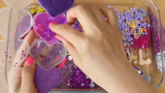Смешиваем «фиолетовые» тени и макияж, игрушки, блёстки в слайм! Увлекательное видео со слаймом!★ASMR