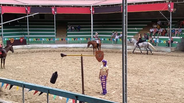 На рыцарском турнире скачет всадник проходя препядствия