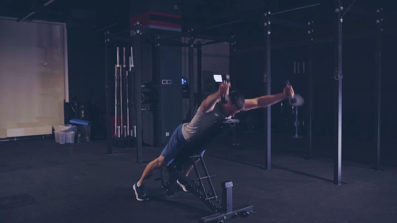 Y разгибания плеч на наклонной скамье