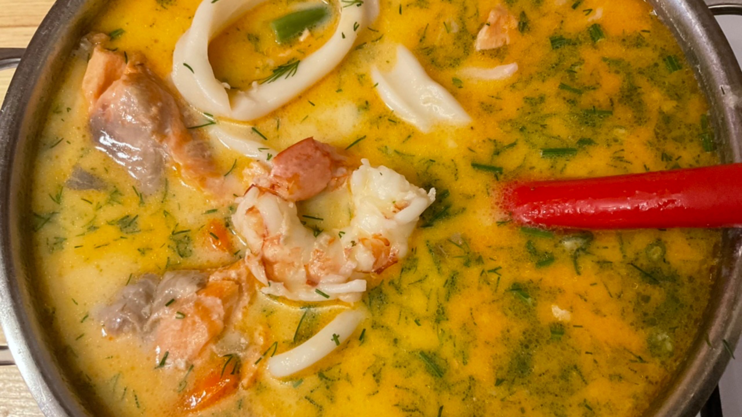 Сливочный суп с морепродуктами