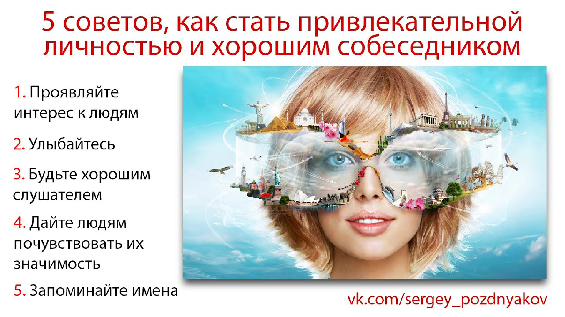 5 советов, как стать привлекательной личностью и хорошим собеседником | САМОРАЗВИТИЕ Сегодня я дам вам 5 советов, как стать привлекательной личностью и хорошим собеседником. Ну что начнем? Умение общаться с людьми, поддерживать разговор и строить отношения – это важные составляющие в современной жизни, которые определяют привлекательность личности. Тем не менее в школах и университетах не обучают таким навыкам. В данной статье я расскажу вам, самые эффективные правила общения с окружающими, которые помогут стать привлекательной личностью. Рекомендую применять эти знания на практике. - Подписывайтесь на мой канал в YOUtube https://www.youtube.com/channel/UCQBy3iEELc0ltPAt_gkCkOQ - Я в Rutube https://home.strannik-j.org/channel/26552914/ - Я VK https://vk.com/sergey_pozdnyakov - Я в ОК https://ok.ru/group51148294651980 - Я в Яндекс Дзен https://zen.yandex.ru/id/608c778a1f08643617f9a192 - Моя БИБЛИОТЕКА https://vk.com/market-11000336?section=album_1 - #САМОРАЗВИТИЕ #Как_стать_привлекательной_личностью