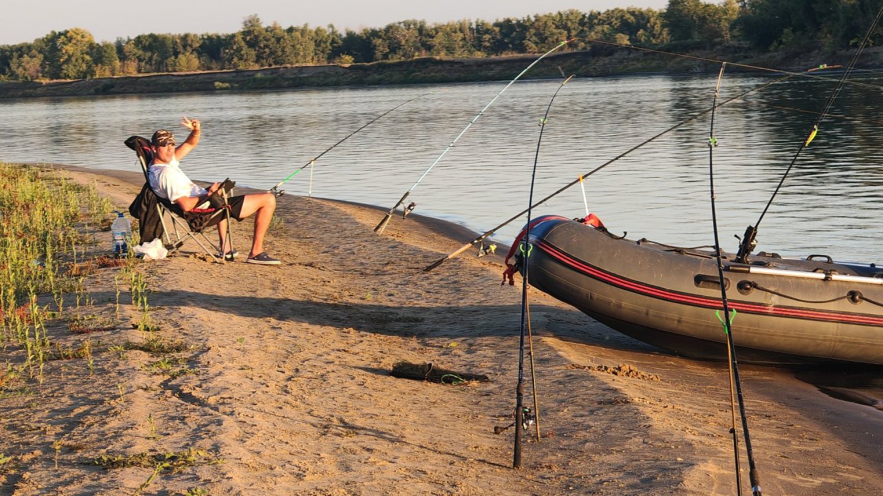Рыбалка на диком острове посреди Волги в Астраханской области.