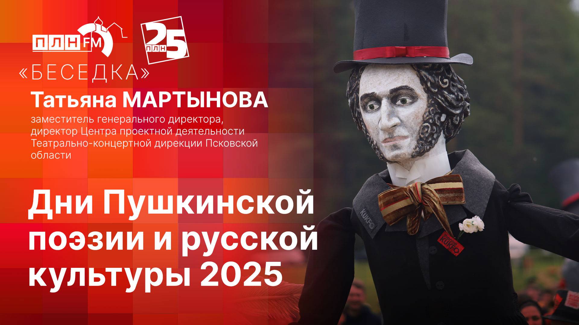 Телефон в студии: (8112) 56-73-72 Гость: заместитель генерального директора, директор Центра проектной деятельности Театрально-концертной дирекции Псковской области Татьяна МАРТЫНОВА Ведущая: Татьяна ИВАНОВА