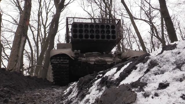 ?Работа экипажа ТОСа по позициям противника близ Курахово, ДНР.