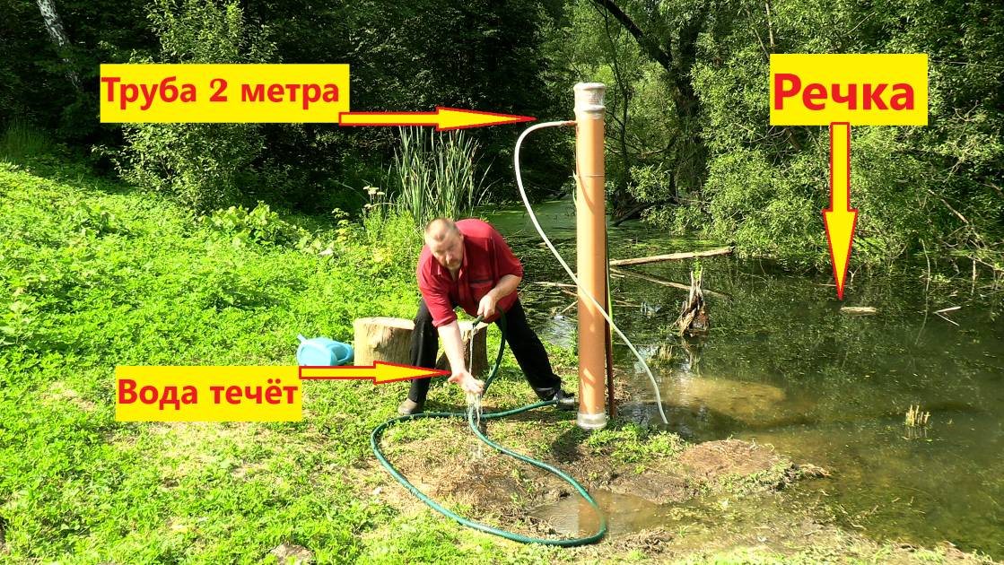 Водяной насос без электричества из трубы 2 метра