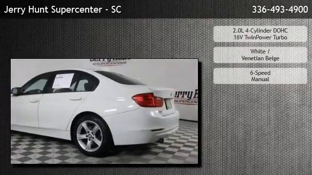 For our most current price call (336) 493-4900 Jerry Hunt Supercenter - SC is offering a 2015 BMW 3-Series 320i in Lexington, NC. Stock Number: 14085A Engine: 2.0L 4-Cylinder DOHC 16V TwinPower Turbo Transmission: 6-Speed Manual Exterior Color: White Interior Color: Venetian Beige Mileage: 104948 6-Speed Manual 2.0L 4-Cylinder DOHC 16V TwinPower Turbo Rear Wheel Drive 9 Speakers AM/FM radio CD player Hi-Fi Sound System Radio data system Radio: Anti-Theft AM/FM/HD Stereo CD/MP3 Player Air Conditioning Automatic temperature control Front dual zone A/C Rear air conditioning Rear window defroster Power steering Power windows Remote keyless entry Steering wheel mounted audio controls Four wheel independent suspension Speed-sensing steering Traction control 4-Wheel Disc Brakes ABS brakes Anti-whiplash front head restraints Dual front impact airbags Dual front side impact airbags Emergency communication system: BMW Assist eCall Front anti-roll bar Knee airbag Low tire pressure warning Occupant sensing airbag Overhead airbag Rear anti-roll bar Brake assist Electronic Stability Control Delay-off headlights Front fog lights Fully automatic headlights Speed control Bumpers: body-color Heated door mirrors Power door mirrors Turn signal indicator mirrors Driver door bin Driver vanity mirror Front reading lights Hands-Free Bluetooth & USB Audio Connection Illuminated entry Leather Shift Knob Leather steering wheel Outside temperature display Passenger vanity mirror Rear reading lights Rear seat center armrest Tachometer Telescoping steering wheel Tilt steering wheel Trip computer Front Bucket Seats Front Center Armrest SensaTec Leatherette Upholstery Passenger door bin Alloy wheels Wheels: 17 x 7.5 Lt Alloy Star-Spoke (Style 393) Rain sensing wipers Speed-Sensitive Wipers Variably intermittent wipers Jerry Hunt Supercenter - SC 418 Piedmont Lexington,NC 27295