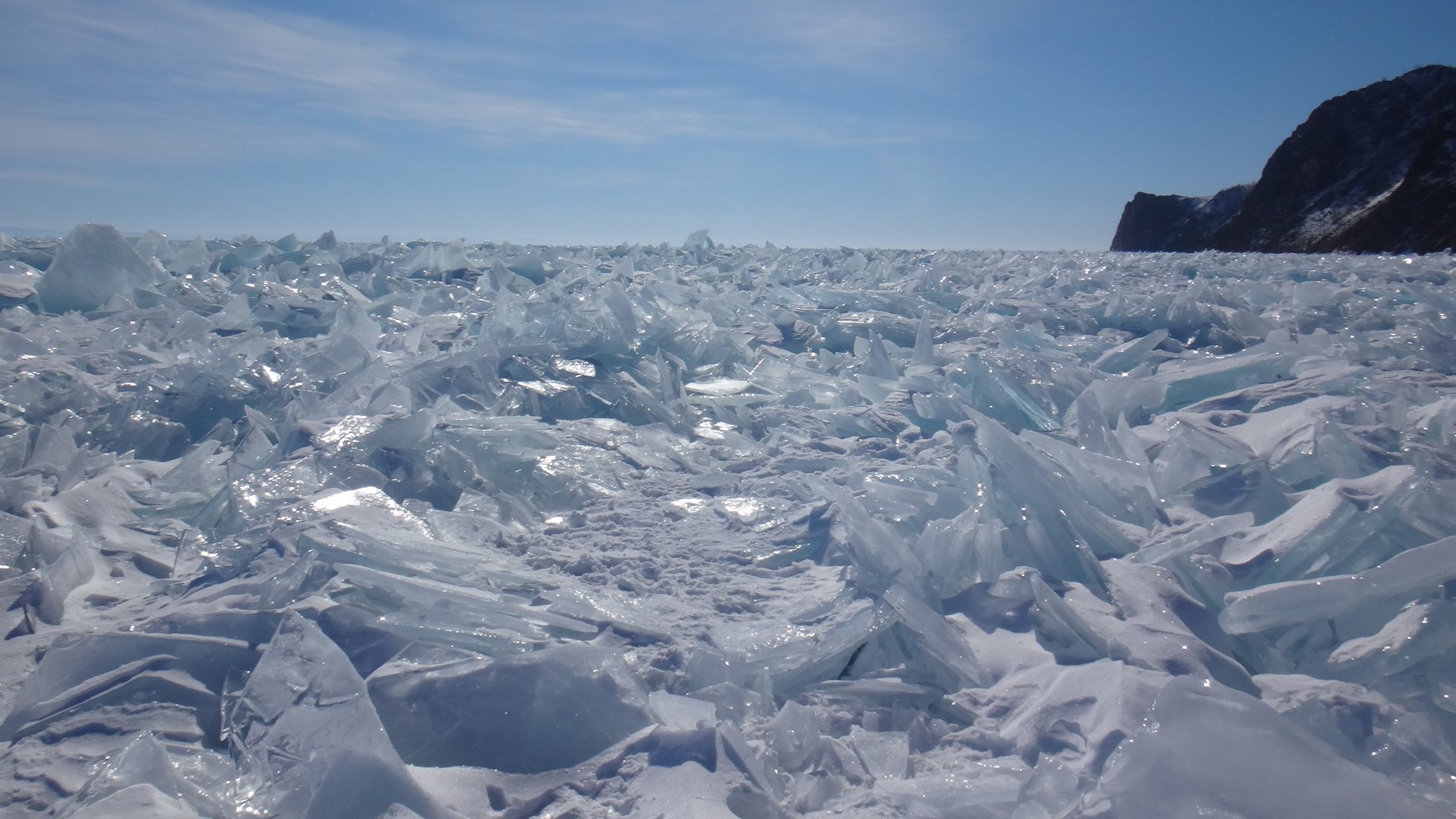 Поход по льду вдоль острова Ольхон и западного берега Байкала до мыса Крестовский.