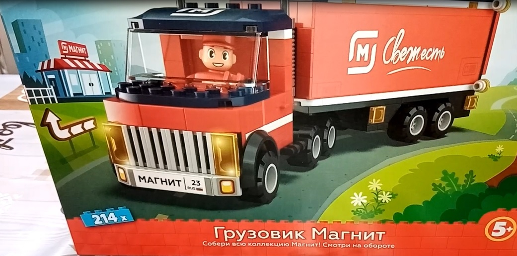 Обзоры. Распаковка. Супер акция в Магните. Игрушки не Лего (Lego) за наклейки. Грузовик.#1