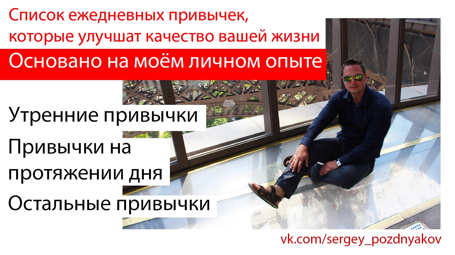 Список ежедневных привычек, которые улучшат качество вашей жизни | Основано на моём личном опыте Сегодня я хочу поделиться с вами своими привычками, которые я накопил за свою жизнь, читая и изучая книги и статьи по саморазвитию. Я не сомневаюсь, что применяя эти привычки, вы почувствуете, как ваша жизнь становиться лучше и насыщенней. Ну что начнем? - Подписывайтесь на мой канал в YOUtube https://www.youtube.com/channel/UCQBy3iEELc0ltPAt_gkCkOQ - Я в Rutube https://home.strannik-j.org/channel/26552914/ - Я VK https://vk.com/sergey_pozdnyakov - Я в ОК https://ok.ru/group51148294651980 - Я в Яндекс Дзен https://zen.yandex.ru/id/608c778a1f08643617f9a192 - Моя БИБЛИОТЕКА https://vk.com/market-11000336?section=album_1 - #САМОРАЗВИТИЕ #Список_ежедневных_привычек