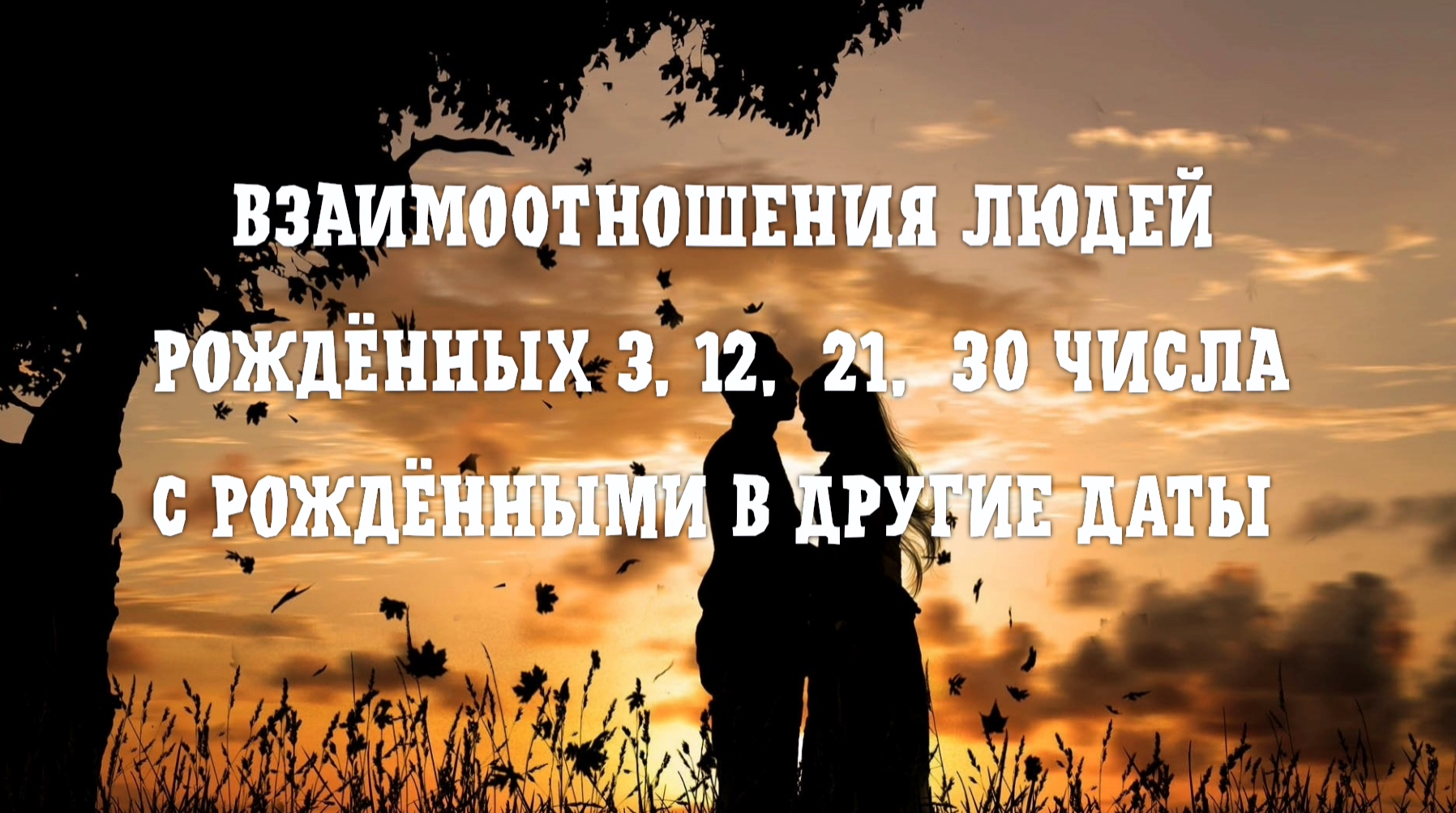 Взаимоотношения людей, рождённых 3, 12, 21 и 30 числа с рождёнными в другие даты #7гроз #веды Есть вопросы или хотите узнать больше? Обращайтесь через сайт https://hammer47x.wixsite.com/balashova Так же канал на RuTube - https://home.strannik-j.org/channel/29723303/ Родившимся 1-го, 10-го, 19-го и 28-го числа, сюда - https://youtu.be/fp_8dQF3Rg4 Родившимся 2-го, 11-го, 20-го и 29-го числа, сюда - https://youtu.be/78wXDChlCgo Родившимся 3-го, 12-го, 21-го и 30-го числа, сюда – https://youtu.be/KTrK4suWEkg Родившимся 4-го, 13-го, 22-го или 31-го числа, сюда – https://youtu.be/jM6hQOKijmw Родившимся 5-го, 14-го или 23-го числа, сюда - https://youtu.be/cE7SZ-3goXY Родившимся 6-го, 15-го или 24-го числа, сюда - https://youtu.be/Uy77c1TPVL8 Родившимся 7-го, 16-го или 25-го числа, сюда - https://youtu.be/jr-YDGcM77I Родившимся 8-го, 17-го или 26-го числа, сюда - https://youtu.be/CNUeGQ0ldr4 Родившимся 9-го, 18-го и 27-го числа, сюда - https://youtu.be/wBPurbOllR4