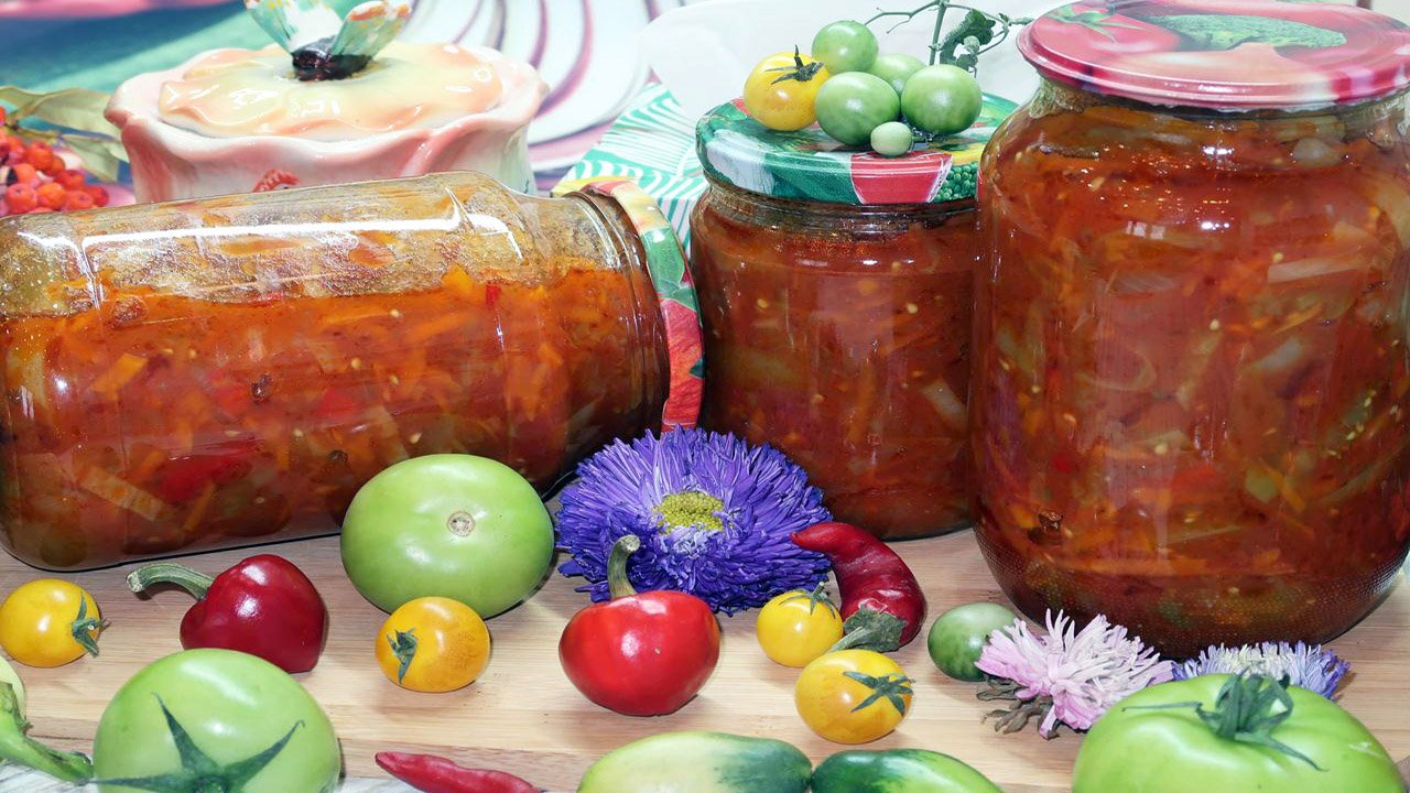 Салат из зеленых помидоров с томатной пастой на зиму